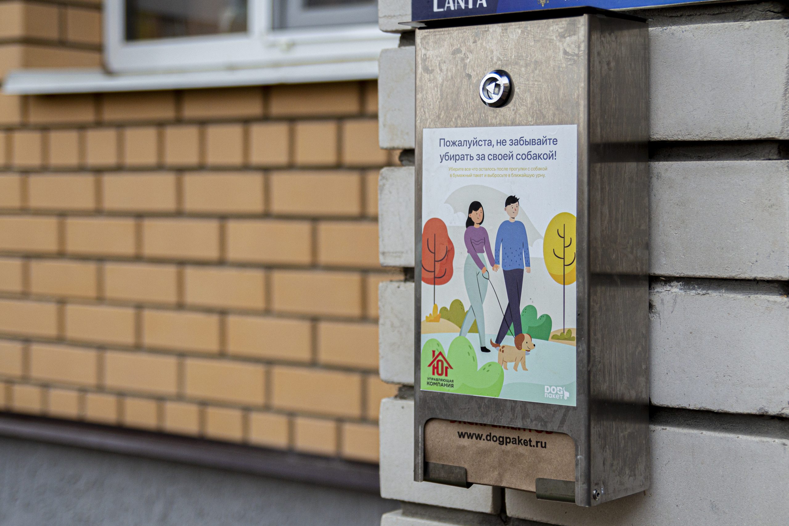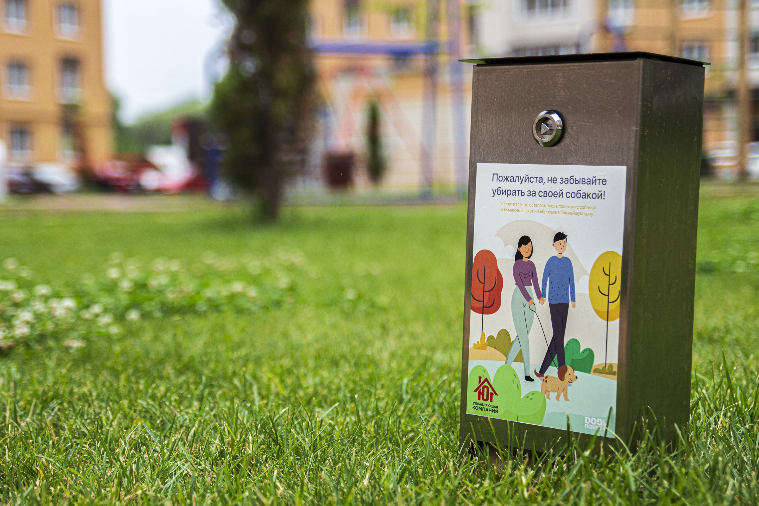 Вместе с нашей управляющей компанией Управляющая компания “Юг” поддержали современный тренд культуры выгула собак и установили два диспенсера с одноразовыми дог-пакетами во дворе нашего пилотного жилого комплекса.