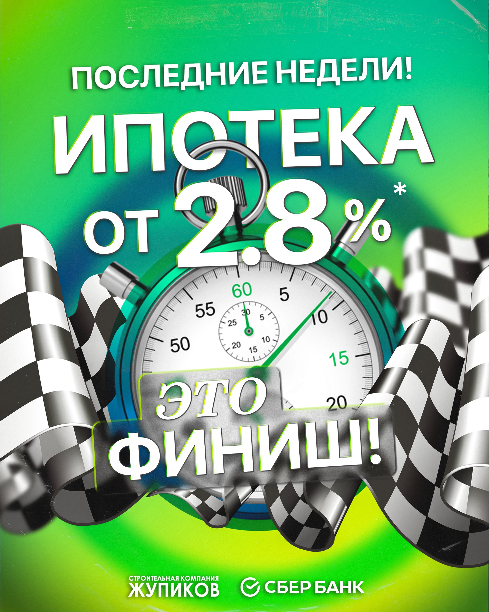 *ПАО Сбербанк. Генеральная лицензия Банка России на осуществление банковских операций №1481 от 11.08.2015. Полное наименование застройщика — ООО «СЗ «Строительная компания Жупиков». Вся документация, проектные декларации объектов участвующих в акции размещены на сайте sk-zhupikov.com. Количество квартир участвующих в акции ограничено. C 02.07.2021 по 01.04.2022 г. вкл. в рамках программы «Господдержка 2020» можно приобрести строящееся жилье (инвестирование) у юридического лица по ДДУ/ДУПТ или готовое жилье по ДКП по программе субсидирования по ставке от 2,15% годовых на весь срок кредитования при условии проведении сделки с услугой «Электронная регистрация права собственности», а так же оформления страхования жизни и здоровья заемщика в аккредитованных ПАО Сбербанк компаниях. В случае отказа заемщика от страхования жизни или здоровья заемщика на второй и/или последующий год срока действия кредита процентная ставка по кредиту увеличивается на 1% годовых. В случае отказа заемщика от услуги «Электронная регистрация права собственности» процентная ставка по кредиту увеличивается на 0,3% годовых. Срок кредита от 120 до 360 месяцев. Первоначальный взнос от 20% от стоимости кредитуемого жилого помещения. Минимальная сумма кредита – 300 тыс. руб. Максимальный размер кредита до 3 млн. руб. Валюта – рубли РФ. Подробнее об условиях кредитования, необходимых документах и ограничениях на www.sberbank.ru