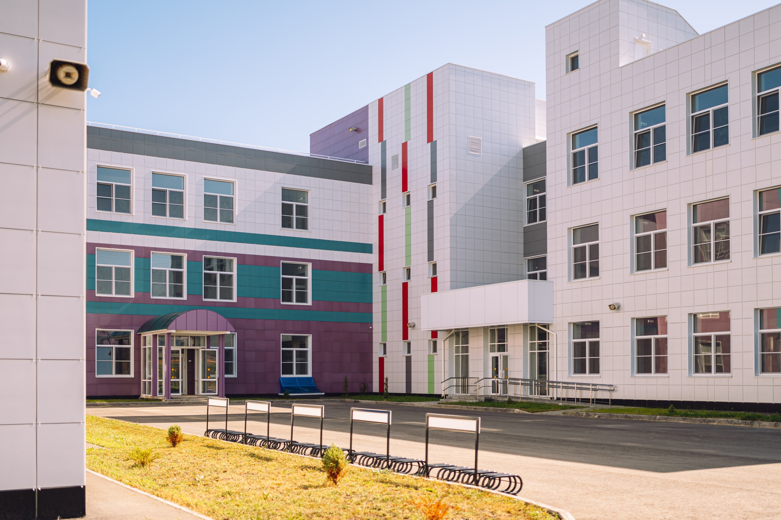 Новая школа состоит из девяти корпусов. В них открыты 98 классов, различные студии, лаборатории, созданы террасы для занятий на открытом воздухе и даже комнаты для отдыха. Созданы специальные ресурсные классы для детей с аутизмом.