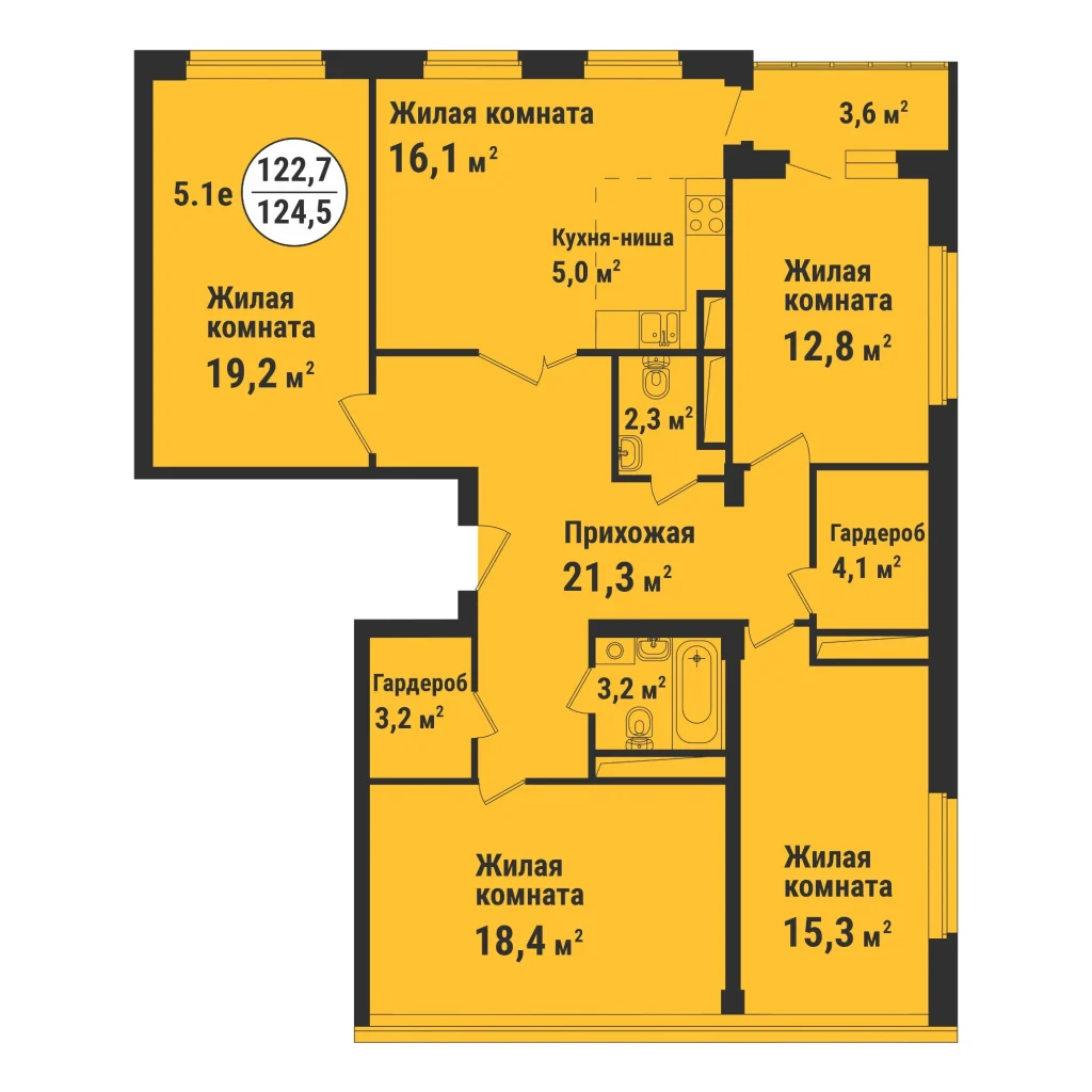 Двухкомнатные квартиры подходят и для одиночного проживания, и для семей с детьми. Несколько санузлов избавят от очереди в ванную, гардеробная спрячет одежду и лишние предметы.
