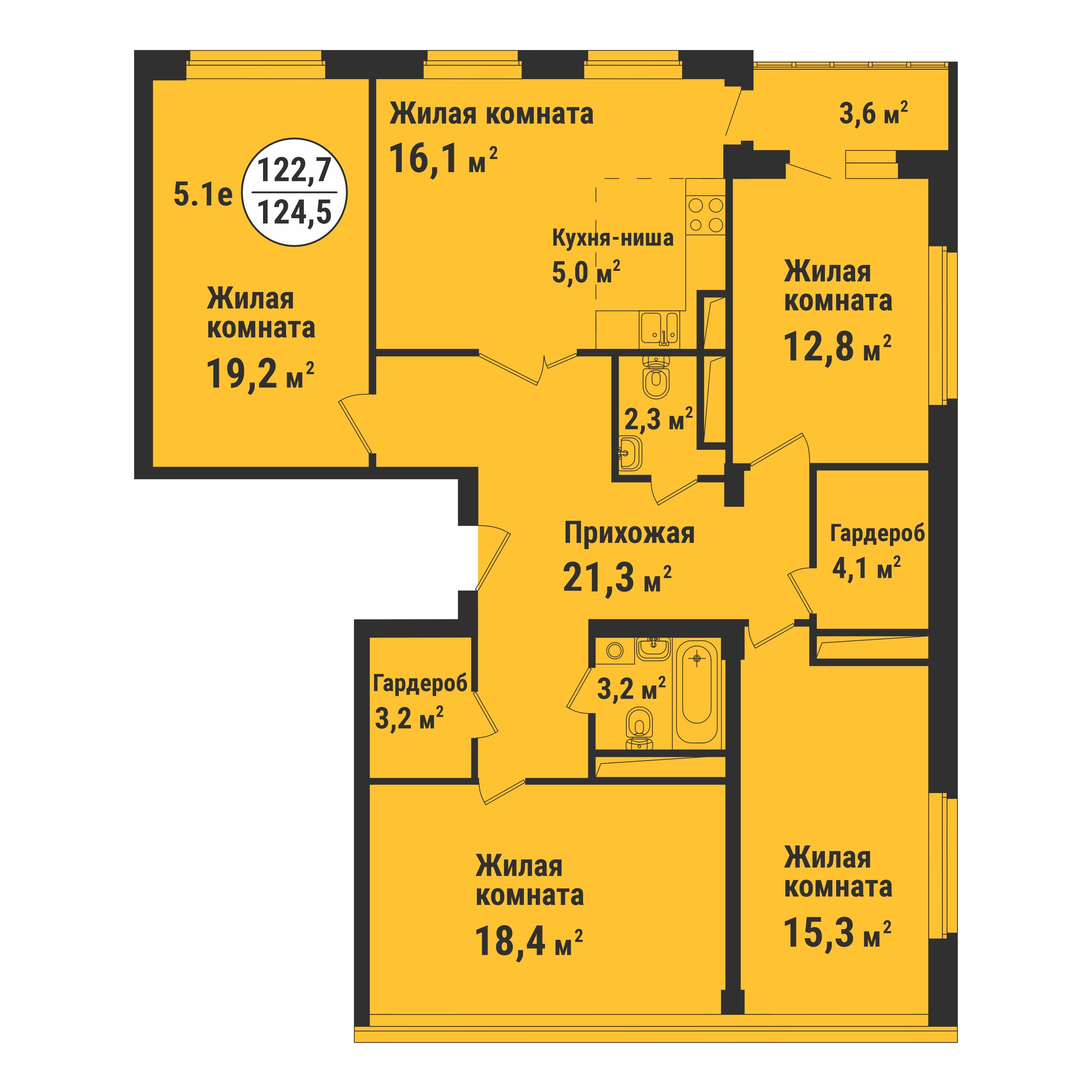 5 ком., 124.50 м²